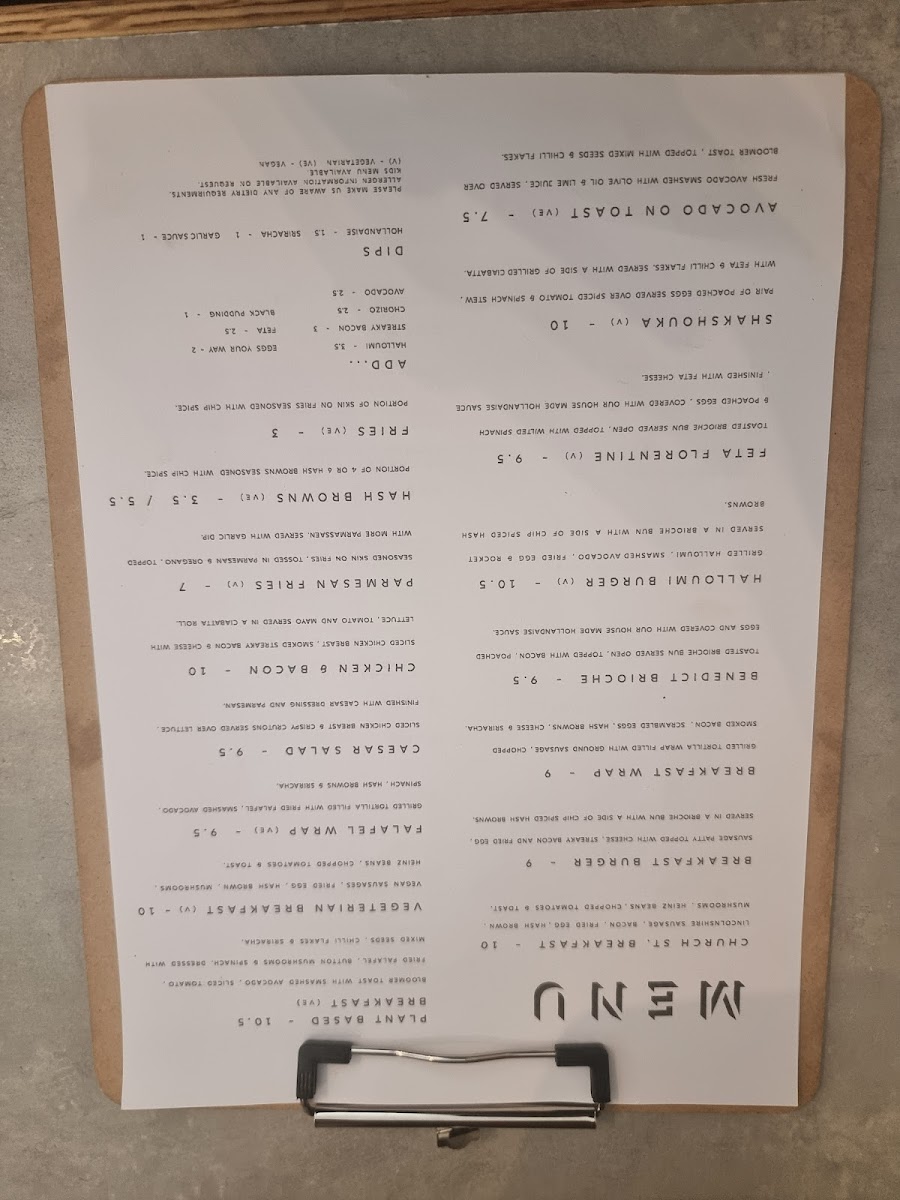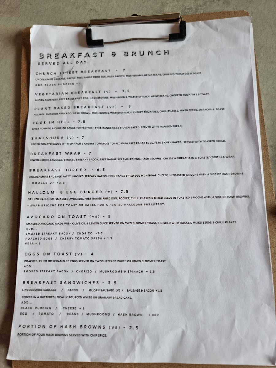 Church Street Coffee & Kitchen Menu